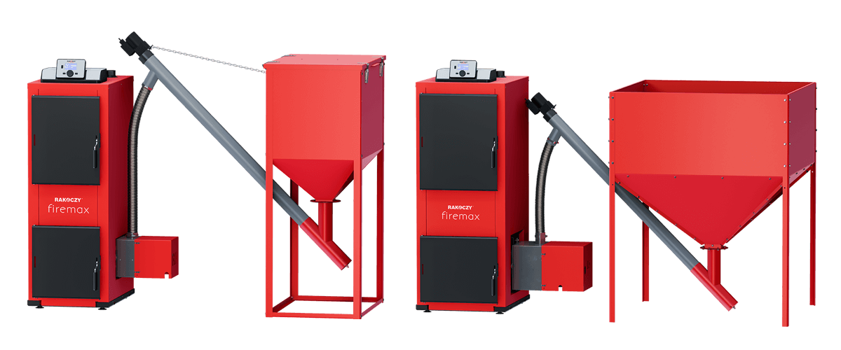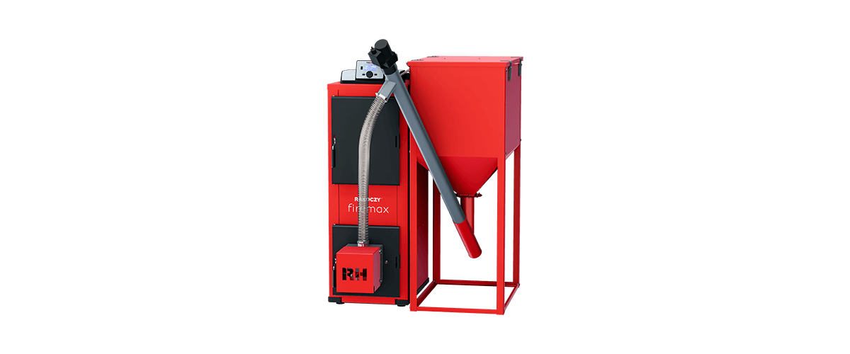 Jest to wersja kotła Firemax z dodatkową obudową palnika i zasobnika.