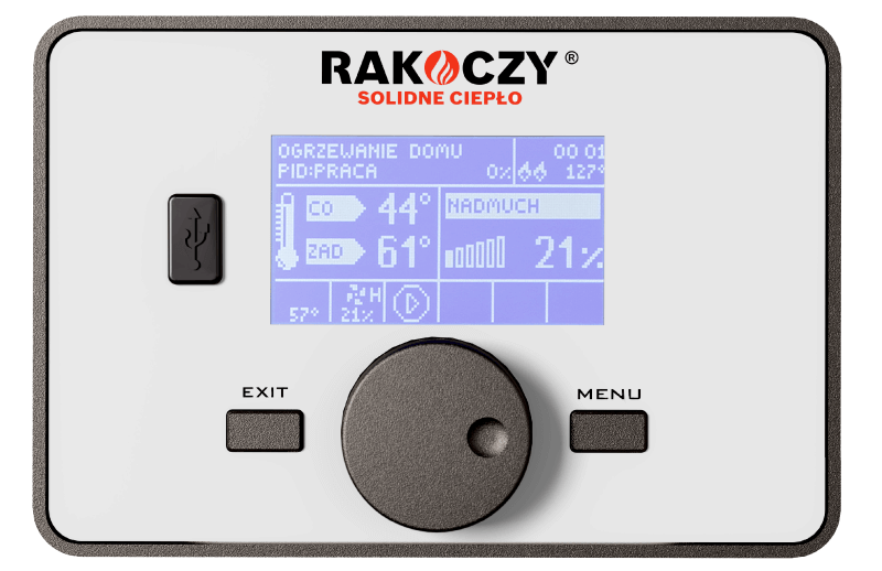 - Płynna modulacja mocy kotła w zakresie 30% – 100% (algorytm PID)