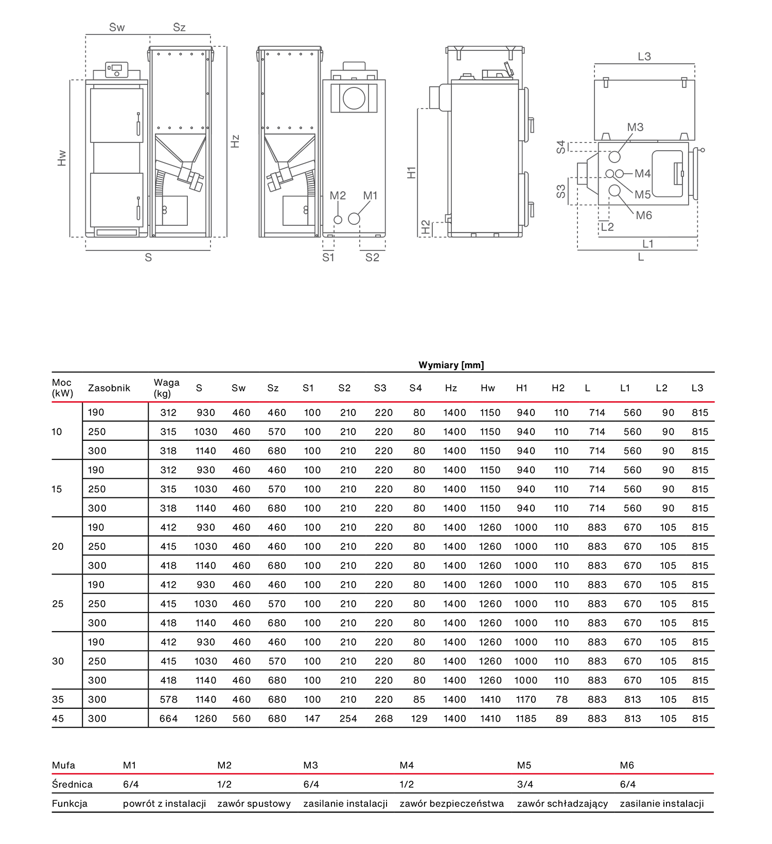 - 35-45 kW z zasobnikiem niezabudowanym o pojemności 300 dm3