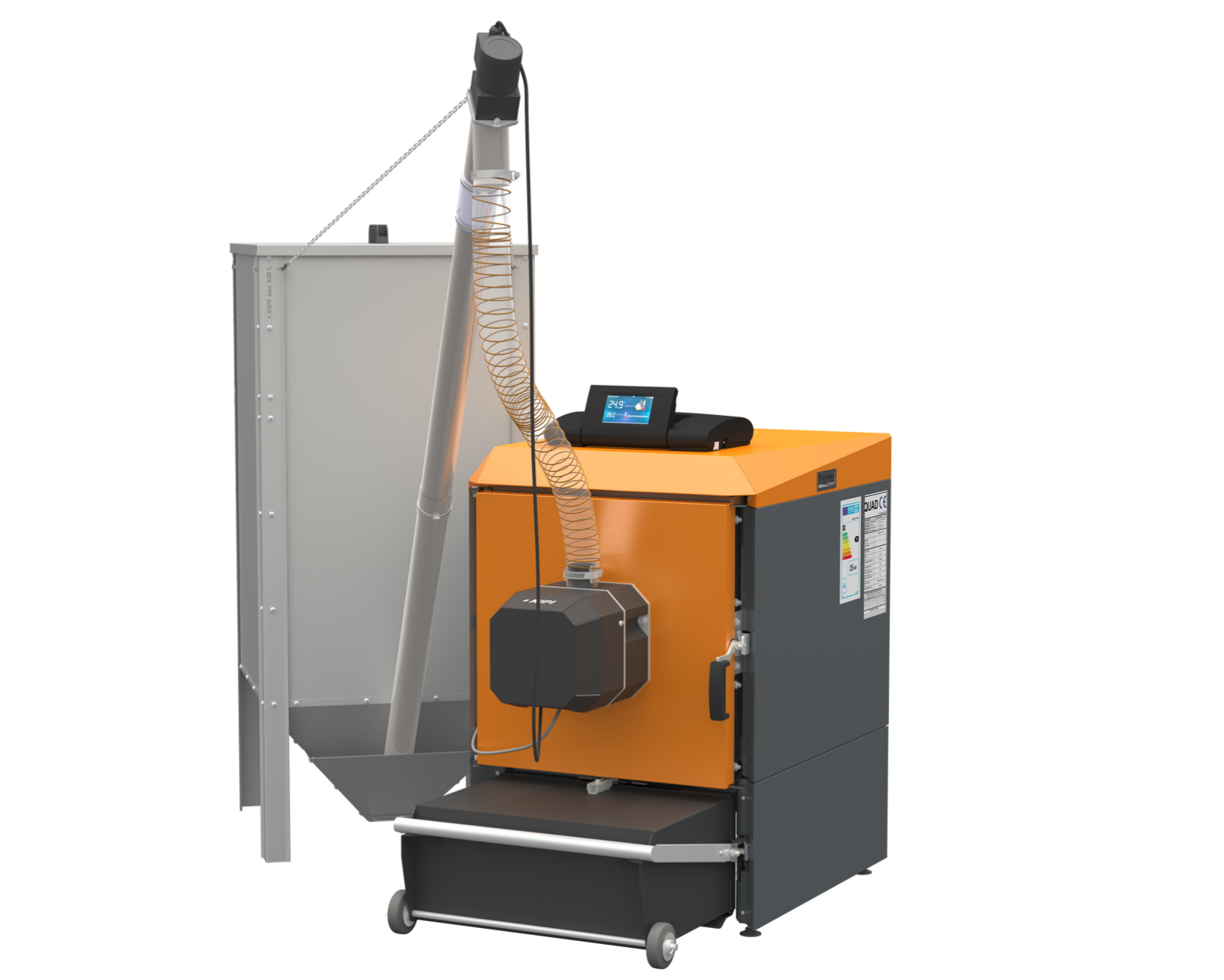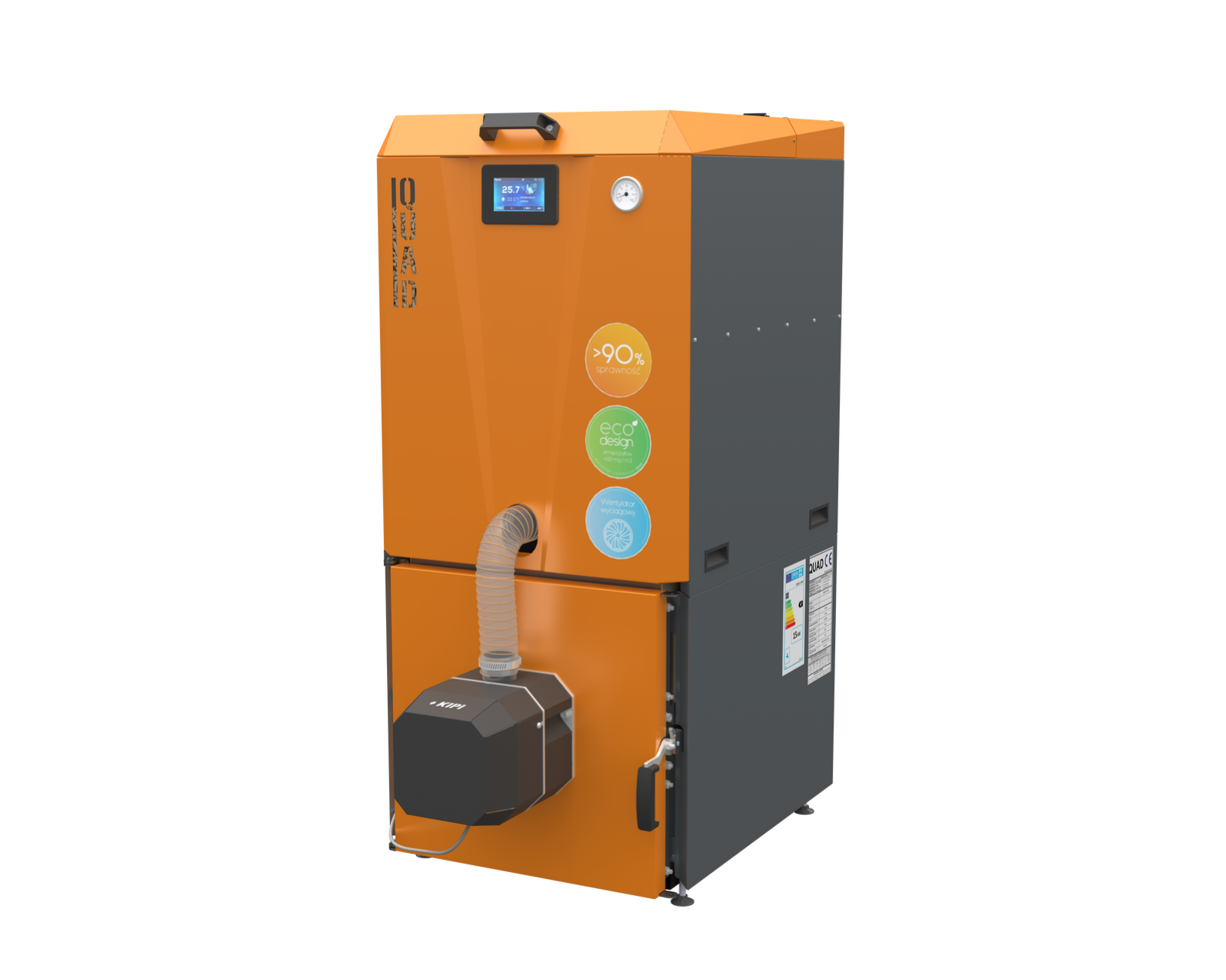 Kocioł Quad z palnikiem KIPI 10-300kW – Inteligentne rozwiązanie do ogrzewania pelletem, ziarnami zbóż, kukurydzą, pestkami owoców, z mozliwością mieszania paliw sypkich. Idealne rozwiązanie do ogrzewania domu i większych budynków od 100-3000m2 powierzchni grzewczej. Inteligentne sterowanie przez smartfon – pełna automatyka czyszczenia. Wysokie dotacje w ramach programu Czyste Powietrze.