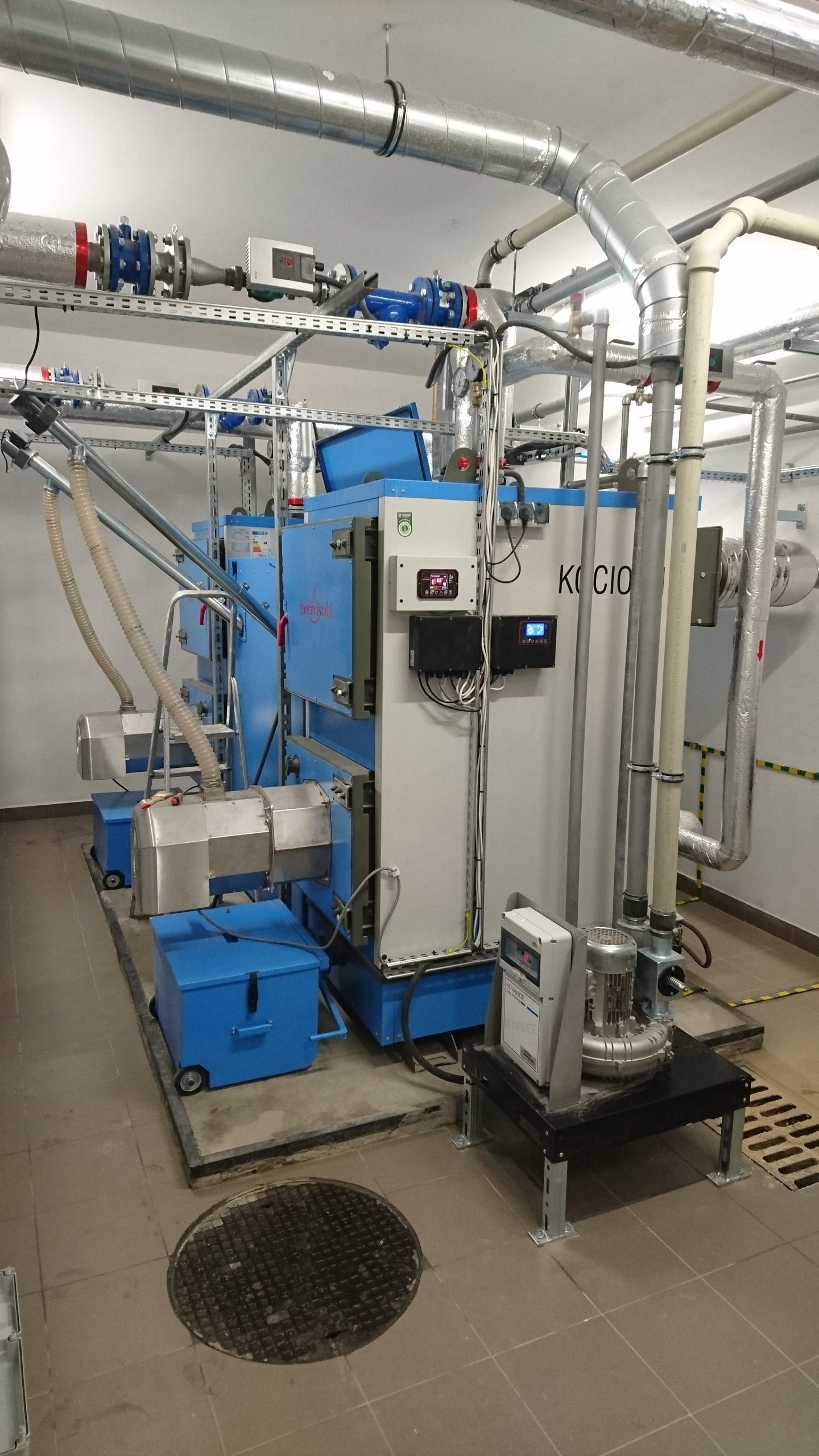 - kotłownie doposażyliśmy w automatyczny profesjonalny pneumatyczny system podawania pelletu z magazynu zewnętrznego – dzięki czemu obsługa kotłowni jest ograniczona do minimum.